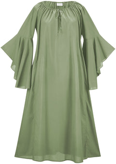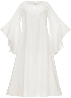 Loosen the ribbon drawstring neckline to wear Angeline off of your shoulders and dance around with its flaring “wing” sleeves like a princess who has found her inner freedom. This chemise looks wonderful under any of our overdresses, though you could also style her under a top and skirt like the Rowan Maxi. Create your own fantasy with your Angeline Maxi Chemise!