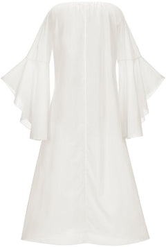 - Fluttering bell sleeves for a “winged” look.