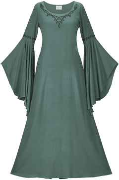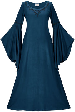 There is certainly something cosmically enticing about the Arianrhod Maxi dress. As its new wearer, you can choose from several of our darker, rich color tones, which can make anyone look powerful when they sweep into a room with this dress draped over their form. Even the sleeve style catches the eye and draws it up to look at the queen who just entered the palace.