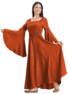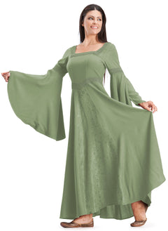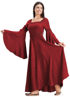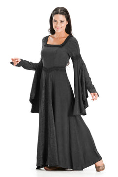 Named for the beautiful and compassionate Arwen from Lord of the Rings, our Arwen Maxi dress is an excellent choice for any elf, human, or other creature of this realm. The most notable detail about the Arwen Maxi is certainly her sleeves, which are both full-length with an extra satin lining that falls from the upper arm to below the hands.