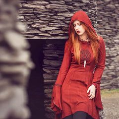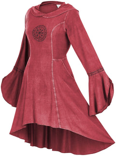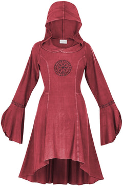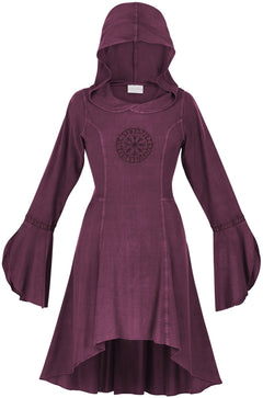 1. The ultimate Norse-inspired garment in the HolyClothing Viking collection, Astra is a hooded tunic dress that lends itself well to daily wear and as part of a festival costume. You could wear your new Astra in the city center as easily as you could wear it to a Renn Faire or fantasy LARP game. It's incredibly detailed; from the Norse compass Vegsivir to the runes that adorn the cuffline of each sleeve.