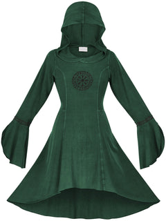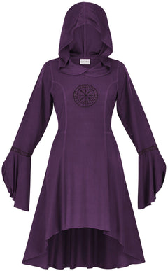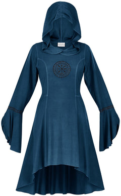 1. The ultimate Norse-inspired garment in the HolyClothing Viking collection, Astra is a hooded tunic dress that lends itself well to daily wear and as part of a festival costume. You could wear your new Astra in the city center as easily as you could wear it to a Renn Faire or fantasy LARP game. It's incredibly detailed; from the Norse compass Vegsivir to the runes that adorn the cuffline of each sleeve.