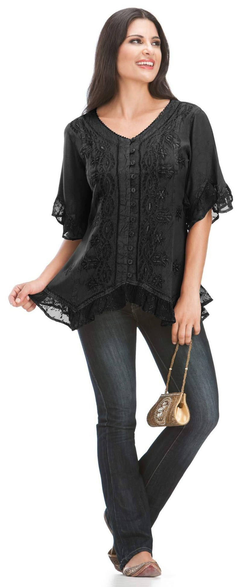 1. Butter-soft, breathable rayon with lace trim.