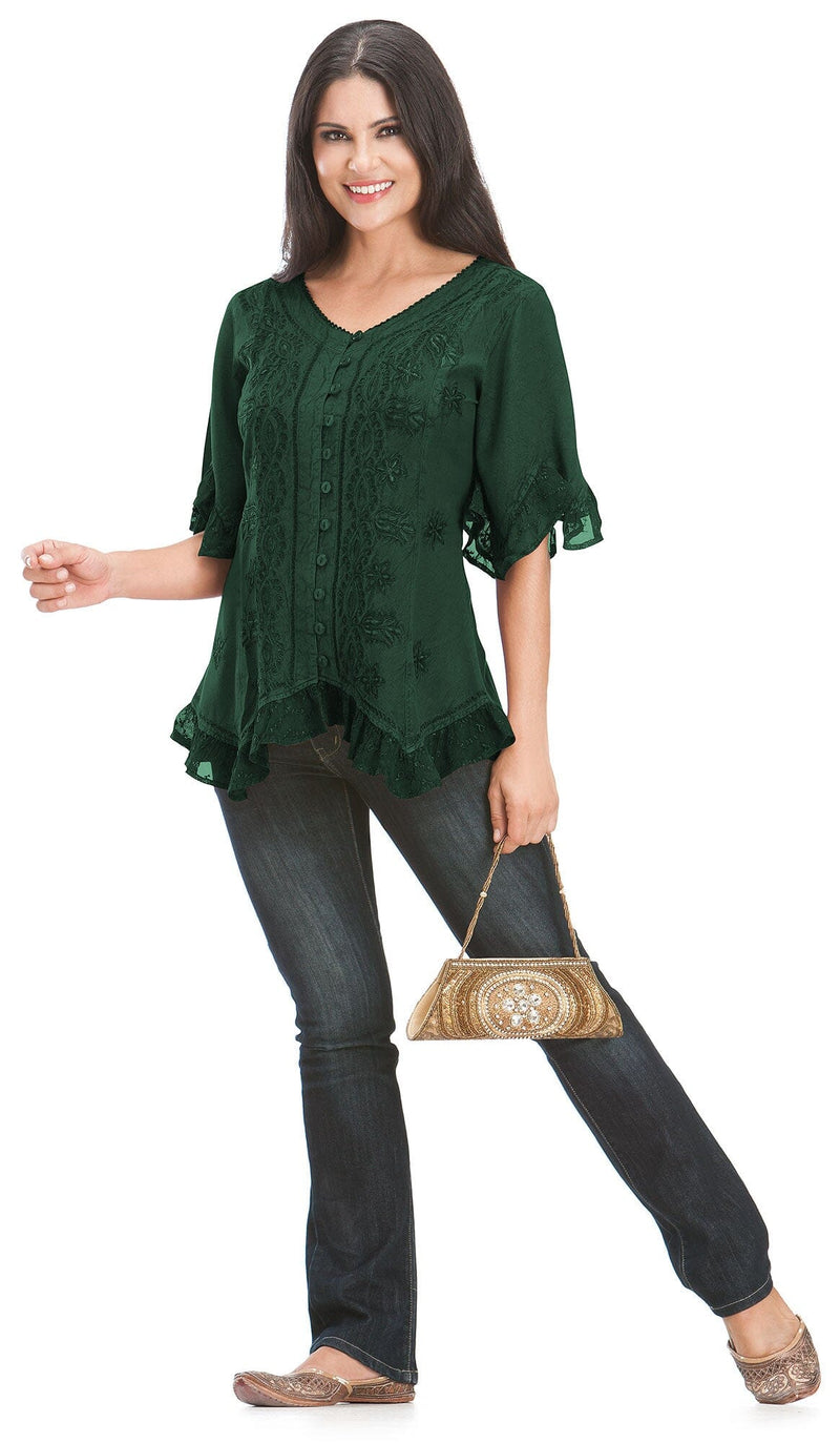- Handkerchief hemline and sleeves.