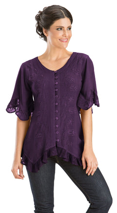 - Embroidered front with functional buttons.