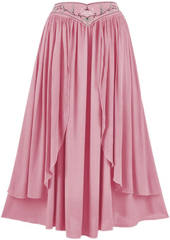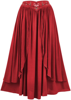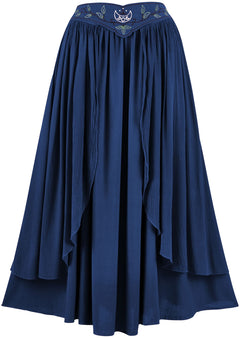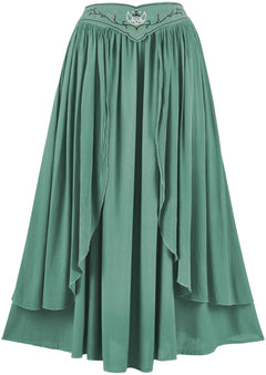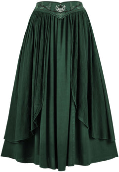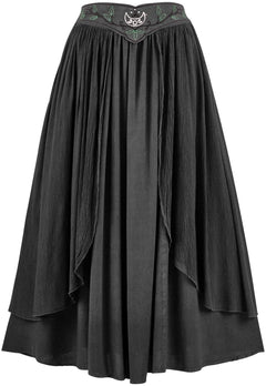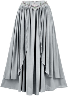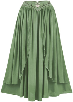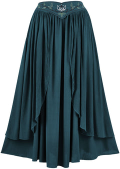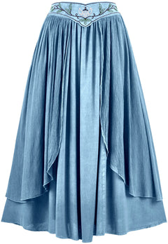 2. The Dryad Maxi Skirt is an additional garment that matches another style in our range of romantized clothing: the Elven Summer Dress. By having these two garments, we can offer our fans more options and versatility for their closet. The Dryad Maxi Skirt has a floating belt that is attached on either side of the hips, giving the appearance of a separate accessory on top of an elegant skirt.