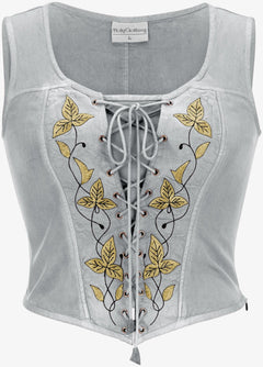 3. Adorned with intricate metallic vine embroidery, the Elowen Bodice pays homage to the delicate beauty of nature while reflecting the resilience that lies within. Like the creeping vines that find their way amidst challenges, you too will conquer every endeavor with unwavering grace.