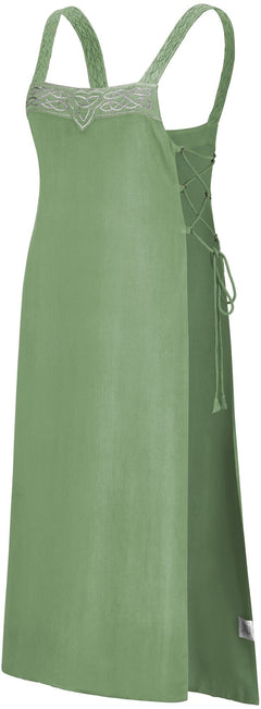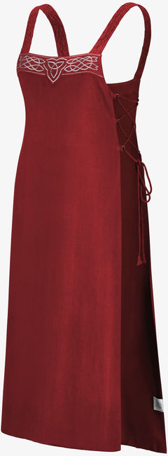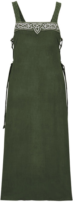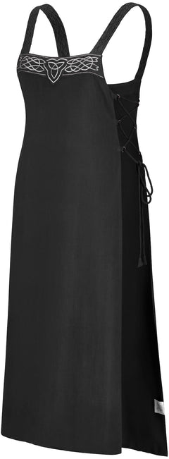 The Ingrid apron overdress would be perfect to wear to a Viking festival for those who are new to celebrations of the culture, or for anyone looking for a lightweight alternative to traditional Norse dress. This fantasy apron dress also takes inspiration from Celtic designs, as you can see from the Triskele and graceful knot embroidery.