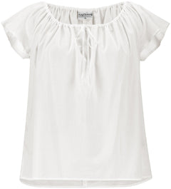 - The drawstring neckline comes to a close in the front of the tunic, where you can tie it in a knot or a cute little bow for added character. Can be worn on or off shoulder. We’ve often seen our tunics being worn at overnight LARP events or for Ren Faires where attendees want to feel like they belong to the world setting a little more.