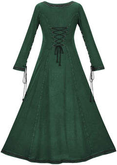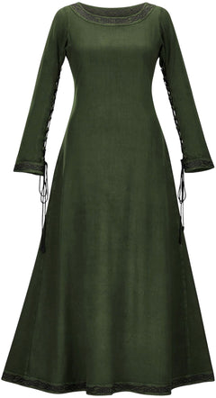 Your new Merida Maxi dress will drape beautifully over your form, while the lacing in the sleeves can be adjusted to create your preferred fit. The fitted sleeves are perfect for activities where you need to use your hands but are concerned about your dress getting caught on things. Whether that is archery, dancing around a campfire, or wandering through open fields as the sun sets on the world.