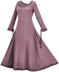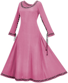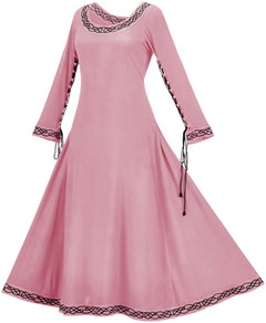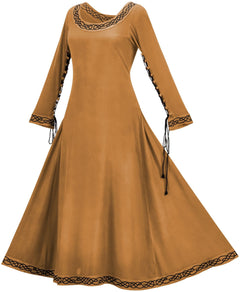 - Wide scoop neckline with Celtic-inspired embroidery.