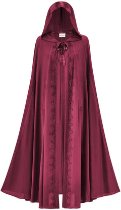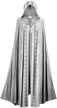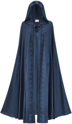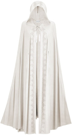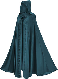 Reveal your true self with our hooded Trinity cloak. The Trinity cloak is the optimal addition to any look that requires a Celtic-inspired touch. The ever-continuing triquetra embroidery design falls down from the tie of the neckline to the bottom hem of the cloak. This stylish addition to the cloak gives it a special touch that works for both historical and fantasy style fits.